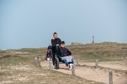 The hippocampe offers individuals with disabilities accessibility to difficult terrains. Imagine exploring rocky mountain paths, sandy beaches, snowy trails, or floating over cool,calming waters securely and independently! It is ideal for use on your own or accompanied.Towed, pushed, or self-propelled, the hippocampe chair offers autonomy to its user. With the use of its push bar or traction kit, a person who is not able to propel themselves can be assisted by others.